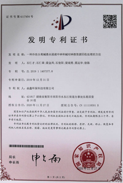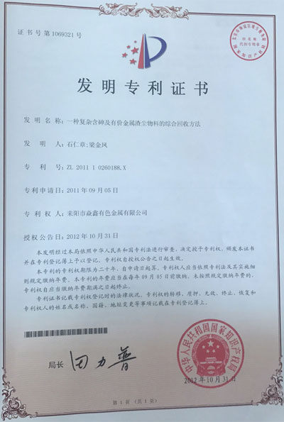 2 | 發(fā)明 | 2011.09.05 | 201110260188X | 一種復(fù)雜含砷及有價(jià)金屬渣塵物料的綜合回收方法 |