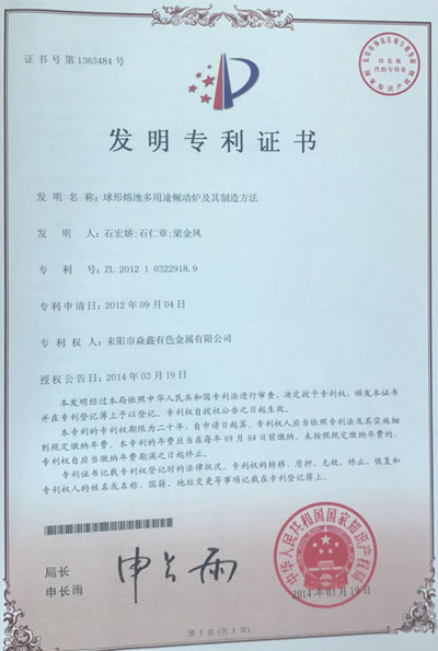1 | 發(fā)明 | 2012.09.04 | 2012103229189 | 球形熔池多用途傾動(dòng)爐及其制造方法 |
