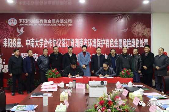 12月27日下午,耒陽(yáng)市焱鑫有色金屬有限公司、中南大學(xué)合作協(xié)議簽訂暨湖南省環(huán)境保護(hù)有色金屬危險(xiǎn)廢物處置工程技術(shù)中心產(chǎn)業(yè)化基地揭牌儀式順利舉行。衡陽(yáng)市委常委、耒陽(yáng)市委書記羅瓊,中南大學(xué)黨委常委、副校長(zhǎng)郭學(xué)益為基地揭牌并講話。副市長(zhǎng)陳寧主持儀式。
