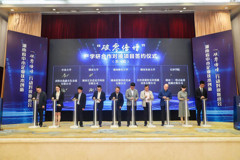 4月30日,公司參加湖南省中小企業(yè)技術(shù)創(chuàng)新“破零倍增”行動(dòng)對(duì)接推進(jìn)會(huì),公司總經(jīng)理助理汪琴參會(huì)。會(huì)上,公司作為第一批簽約代表,與中南大學(xué)就冶煉煙氣脫硫制亞硫酸鈉工程項(xiàng)目正式簽約。